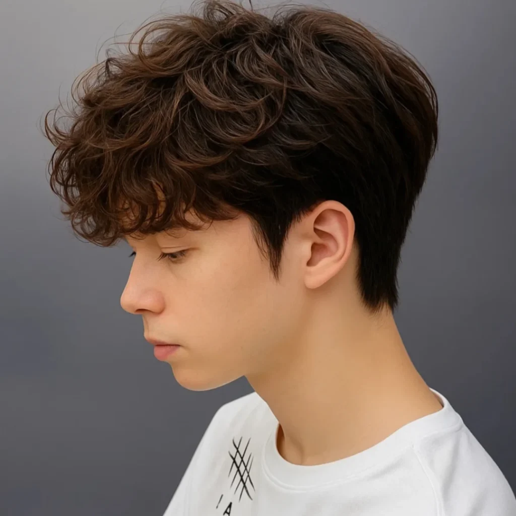 The soft perm hairstyle adds gentle waves and volume, making fine hair look fuller. It’s especially popular among Korean and Japanese men for its natural finish. This style requires minimal daily styling and grows out gracefully.