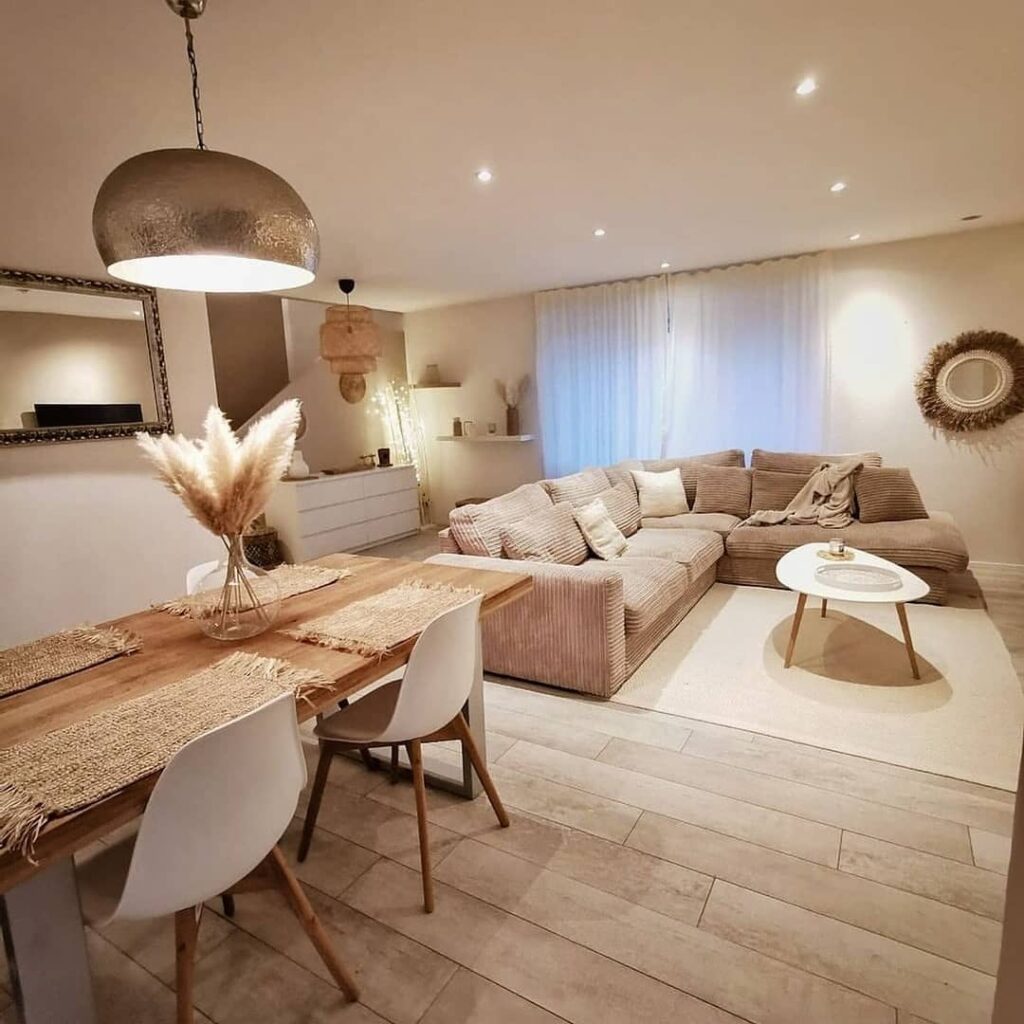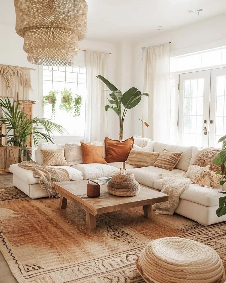 Neutral boho combines relaxed textures with soft, earthy shades. Woven decor, layered rugs, and natural fabrics add charm. Keeping the palette neutral prevents the look from feeling busy. This style feels both cozy and effortless.