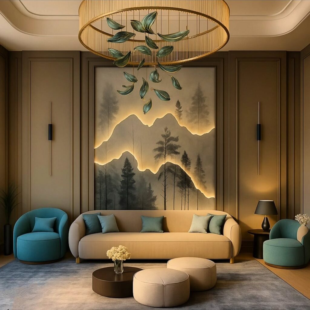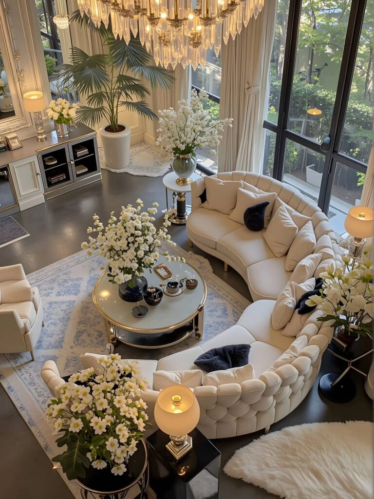 Lounge-style living rooms prioritize comfort and relaxation. Deep sofas, layered cushions, and soft rugs create a cozy setting. Warm lighting enhances the inviting feel. This design is perfect for unwinding and entertaining.