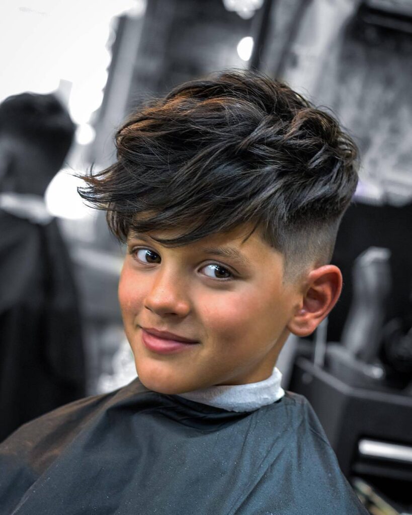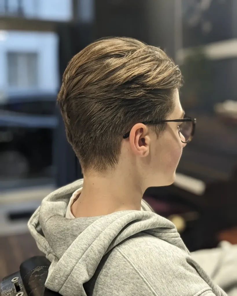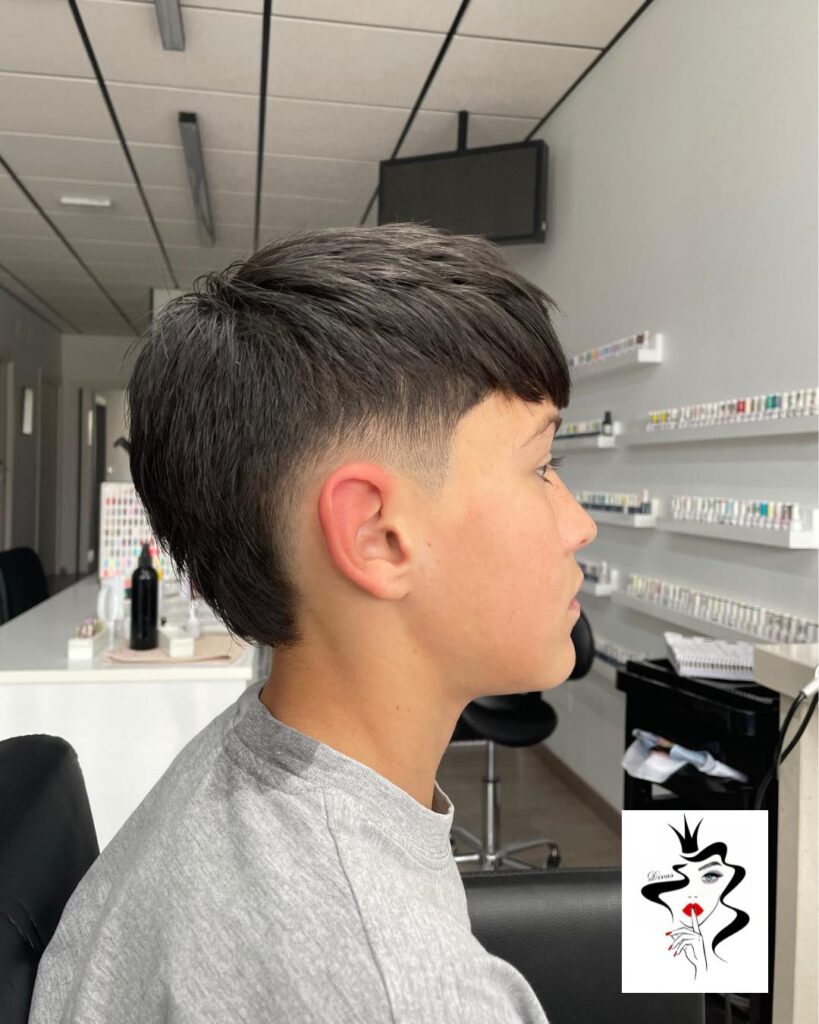 The undercut with a textured fringe is a consistently popular choice among the best undercut haircuts for boys who want a youthful, bold appearance. It features closely clipped sides combined with a longer top that falls forward into a choppy, textured fringe across the forehead. As a result, the forehead gains a dynamic, expressive frame that suits many face shapes naturally. Furthermore, the fringe can be styled forward for a sharp, angular look or swept slightly to one side for a softer, more relaxed interpretation. This cut works especially well for boys with straight or slightly wavy hair. Additionally, the extra-long front fringe can also be styled forward for an emo-inspired finish or swept aside for a more casual, school-appropriate result. Use a light wax or texturizing spray to shape and hold the fringe without stiffness. Moreover, regular barber visits every two to three weeks maintain the clean undercut contrast. Therefore, the textured fringe undercut is a versatile, personality-packed boys’ haircut that suits every setting.