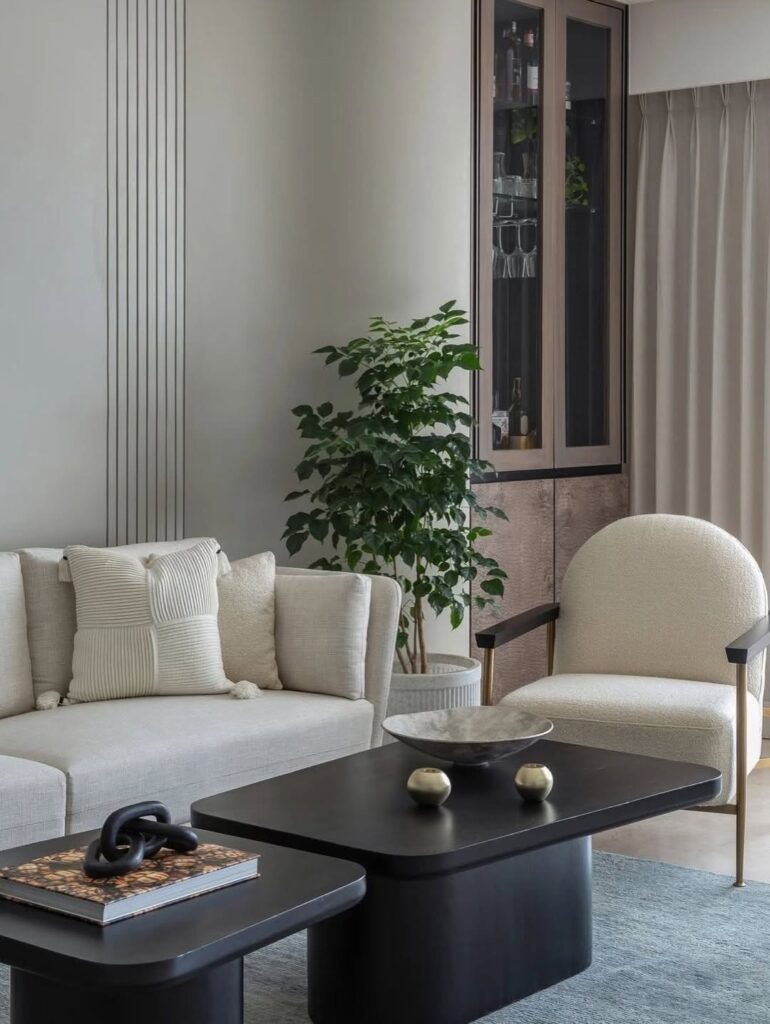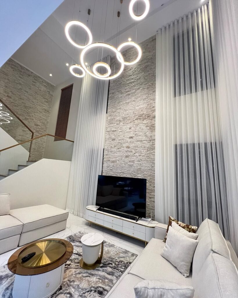 Interior designers often hang curtain rods close to the ceiling rather than directly above the window frame. This technique makes the room appear taller and more elegant. Choose simple floor-length curtains in neutral colors such as white, beige, or soft grey. Even affordable cotton or linen curtains can create a luxurious appearance when hung correctly.