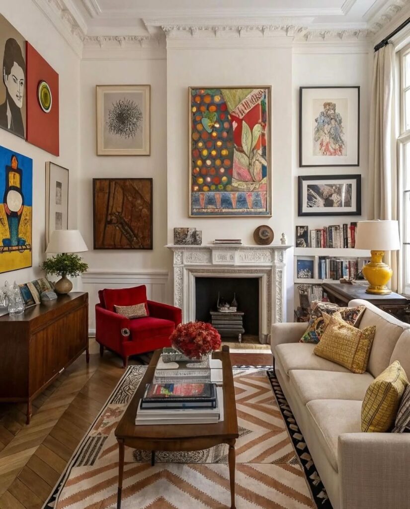 A gallery wall can look elegant and personal without costing much money. You can use free printable art from design websites, postcards, magazine pages, or even your own photographs. When framed and arranged thoughtfully, these items can create a beautiful wall display. To keep the wall looking cohesive, choose frames in the same color or paint inexpensive frames so they match. Black, white, or wooden frames work well together. The final result feels curated and intentional, even though the individual pieces were very affordable.