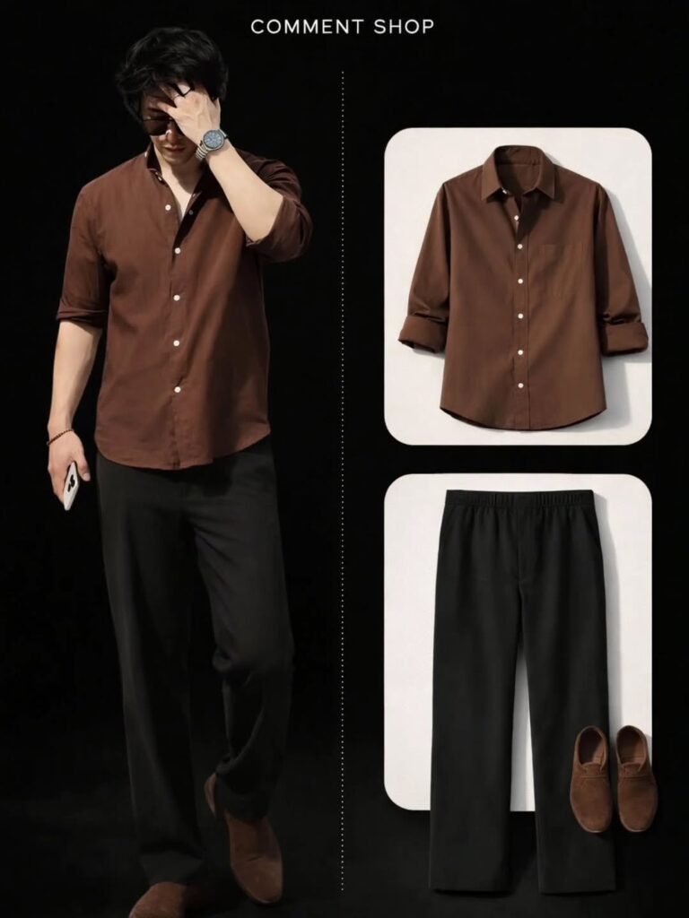 Earth tones — camel, olive, rust, warm brown, tan — have a way of making a business casual outfit look more considered than it actually is. There’s something about wearing colors pulled from the same natural palette that just holds together visually without requiring much effort. A camel-colored shirt with olive trousers and tan leather shoes, for example, looks like an intentional outfit even though the styling is straightforward. These shades also tend to photograph well and look good under both natural and office lighting, which matters more than people realize.