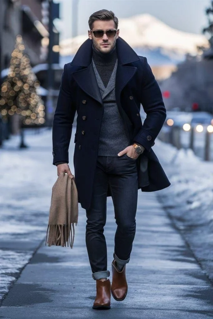 Dark jeans done properly can absolutely work in a business casual setting. The key word is properly — they need to be clean, well-fitted, and free of any distressing or fading. Pair them with a casual blazer in grey, navy, or camel, and a fitted shirt either tucked or half-tucked. Add leather shoes or clean loafers. The dark denim reads formal enough at a distance, and the blazer covers any remaining casualness. It’s a combination that feels effortless while looking like you put thought into it — which is exactly what good business casual does.