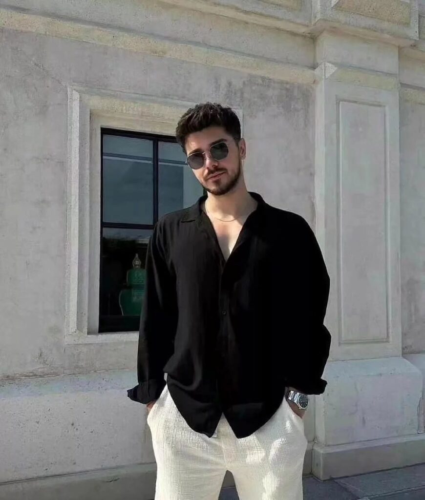 Relaxed fit shirts paired with trousers create a comfortable yet stylish casual outfit. This look is ideal for those who prefer ease without sacrificing style. Soft fabrics and loose silhouettes enhance comfort. Finish with casual shoes or minimal sneakers.