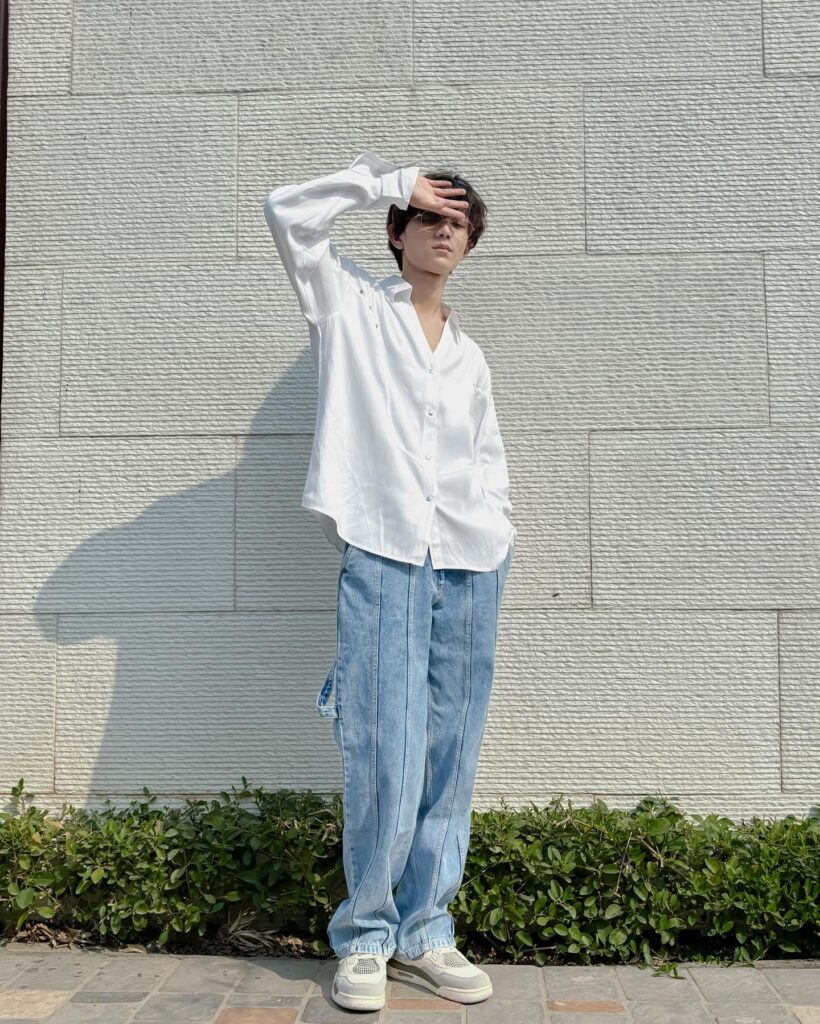 A classic white shirt paired with blue jeans is a timeless casual outfit that never goes out of style. This look is clean, versatile, and works for everyday outings or casual meetups. You can keep it crisp with sneakers or dress it up slightly with loafers. Rolling up the sleeves adds a relaxed finishing touch.