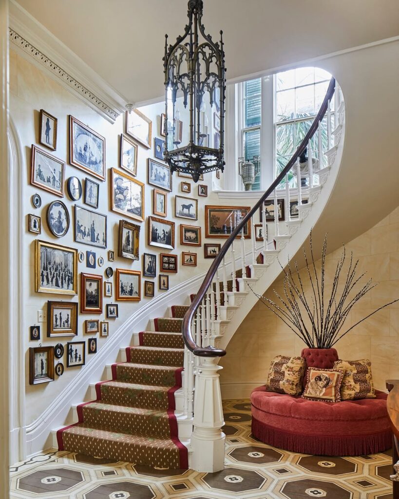 The staircase wall offers a great opportunity for decoration. A gallery wall with framed photos or artwork can make the space visually interesting. Using frames in the same color or style helps keep the display cohesive. Arranging the frames along the angle of the stairs creates a natural and balanced look.