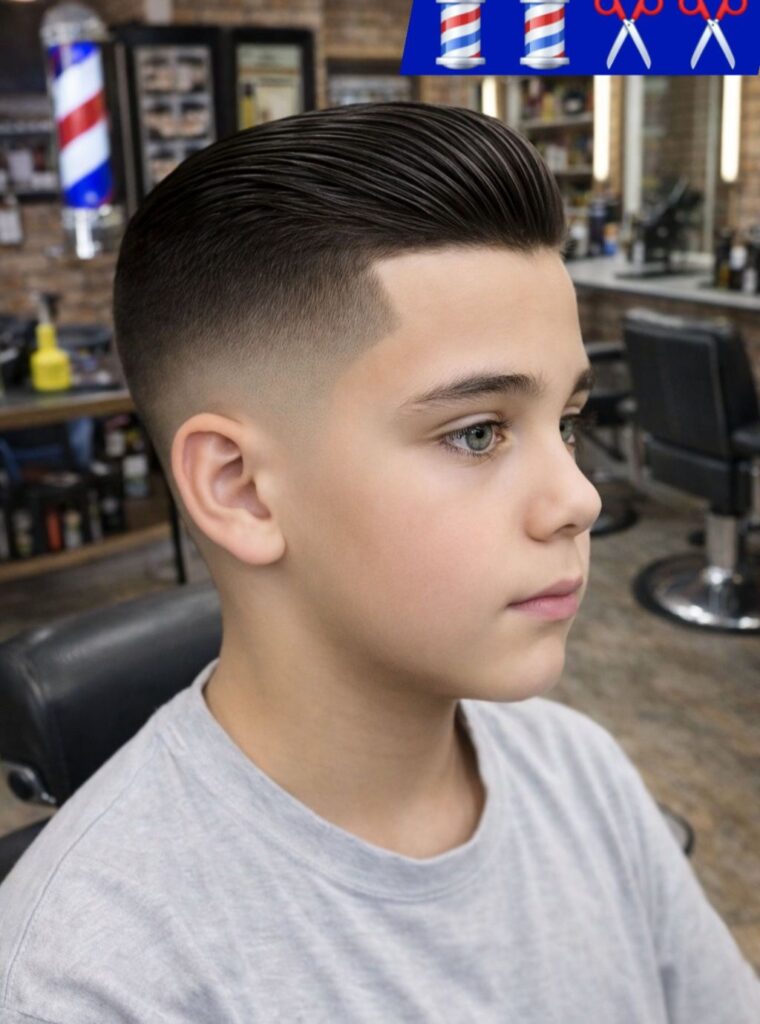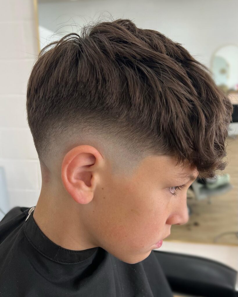 The low fade haircut keeps the sides clean while maintaining a soft, natural transition. It looks stylish without being too bold for school rules. The top can be styled neatly or left natural. This haircut is suitable for both younger boys and teenagers.