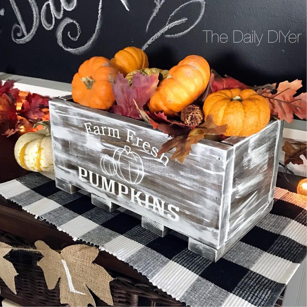Wooden crates create a rustic and versatile fall décor element. Stack or arrange them to hold pumpkins, gourds, or seasonal signs. This look works beautifully for farmhouse and traditional outdoor styles.