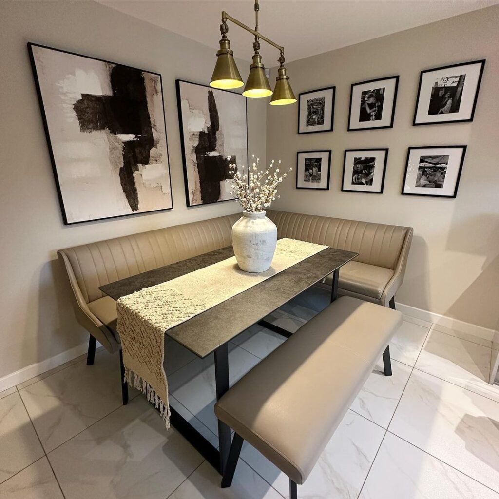 A cozy dining nook creates an intimate space for everyday meals. Built-in benches, soft cushions, and warm lighting enhance comfort. This idea works well in kitchens or corners of open spaces. It adds charm while making efficient use of available space.