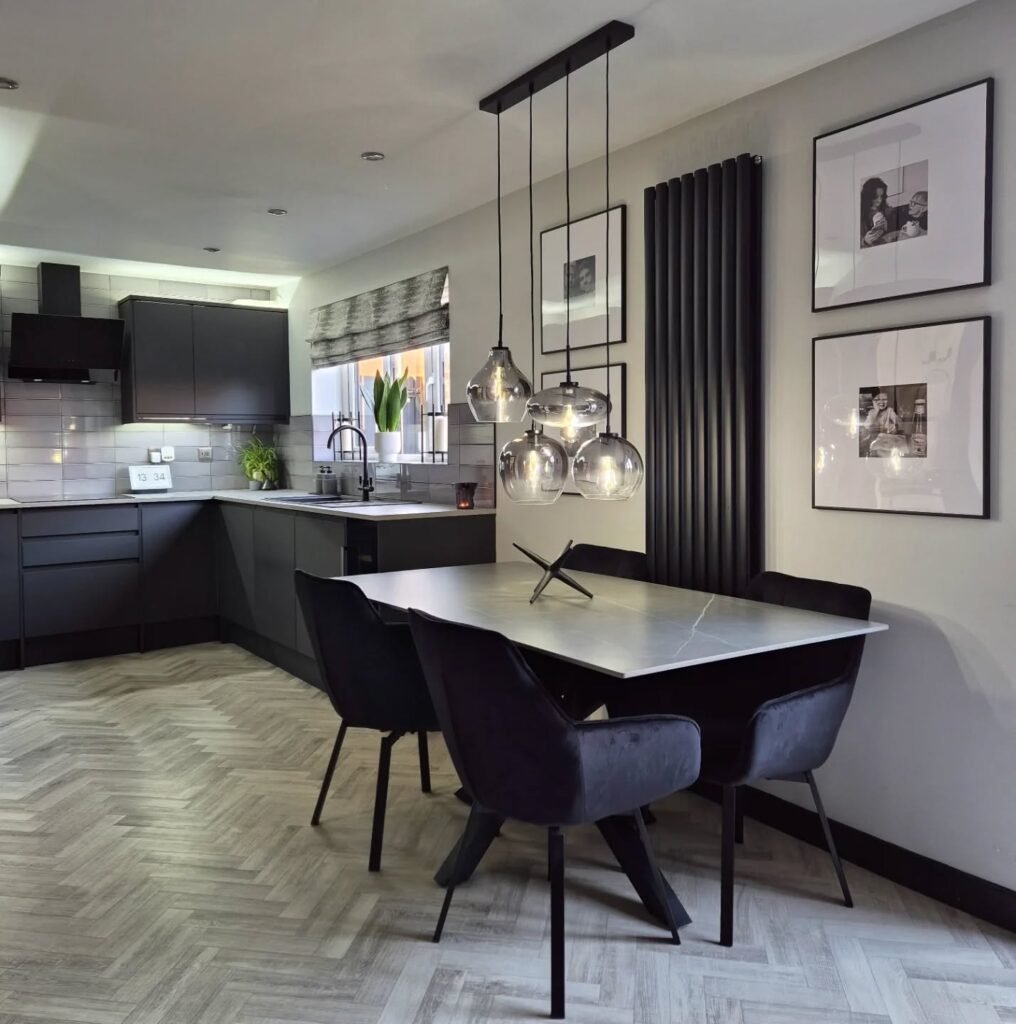 Black and white dining rooms offer a bold yet classic look. Strong contrasts create visual interest while maintaining simplicity. Clean lines and minimal décor keep the design modern. This color scheme works well in both formal and casual dining spaces.