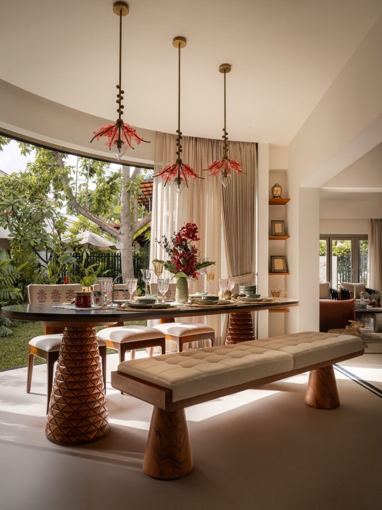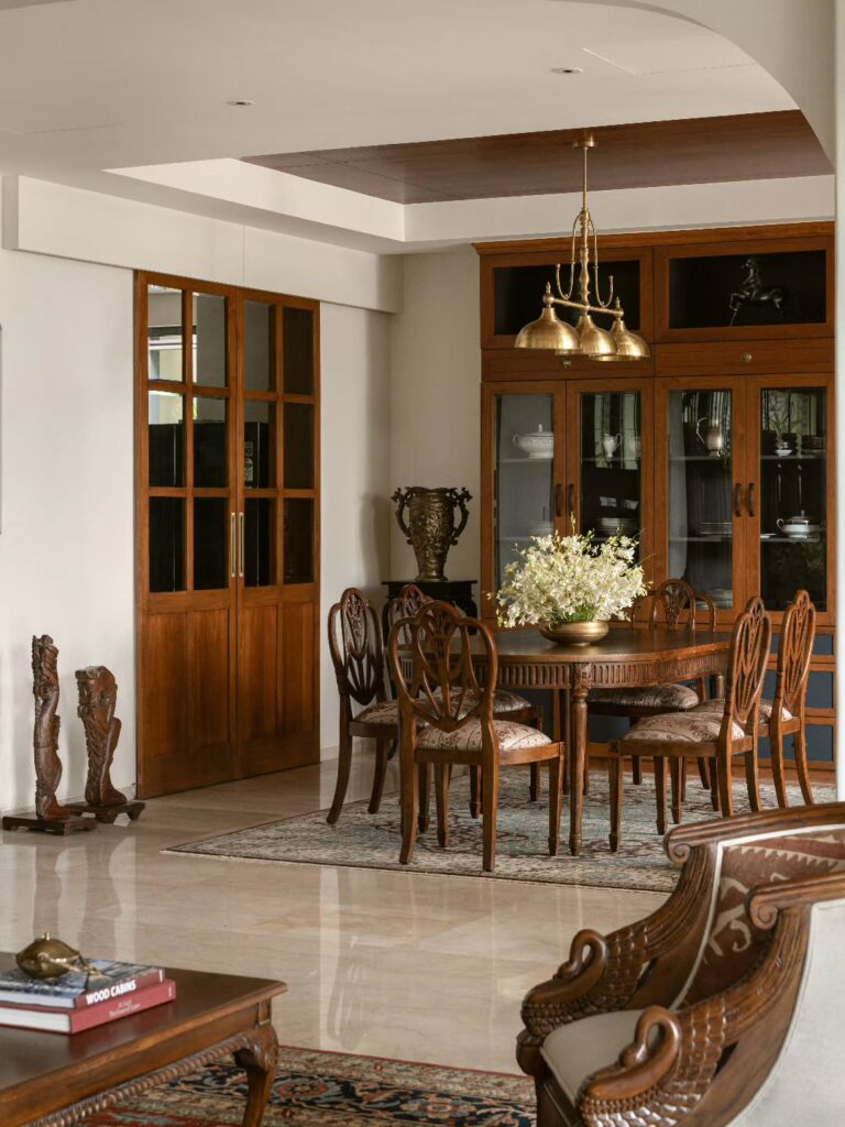 A wooden dining table acts as a timeless centerpiece in the dining room. It adds warmth, durability, and natural beauty to the space. Pairing it with neutral chairs keeps the look balanced. Wooden tables suit both modern and traditional dining room styles.