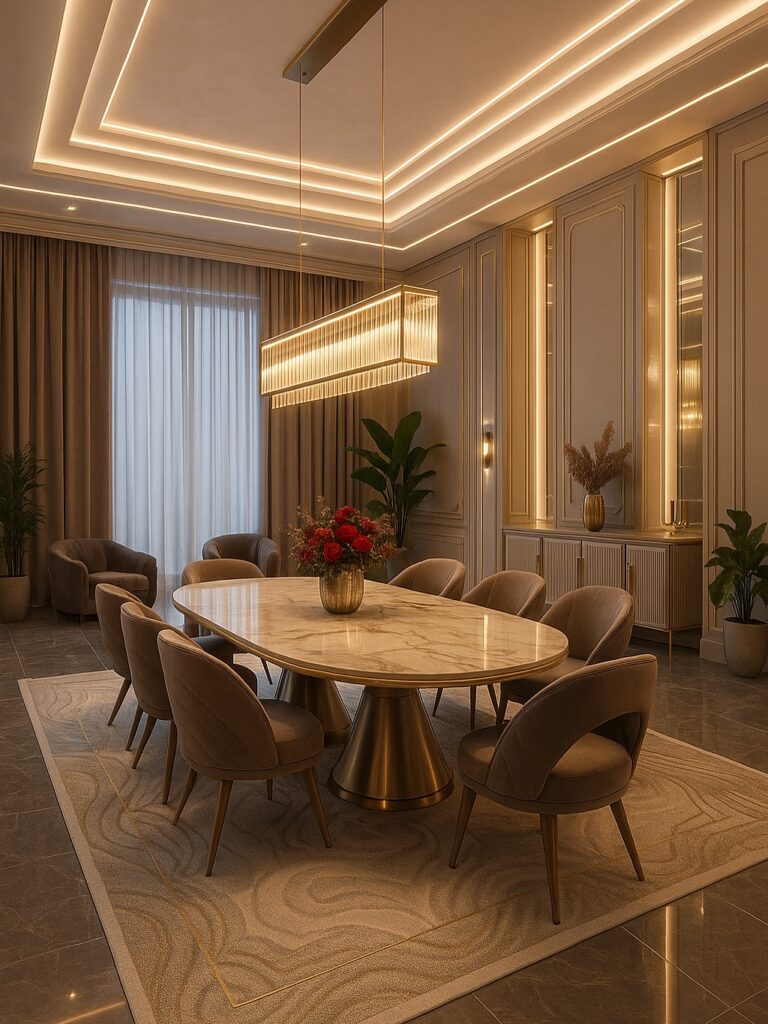 An elegant casual dining room blends comfort with refined style. Soft colors, comfortable seating, and subtle décor create balance. The space feels polished without being overly formal. This design is perfect for everyday meals and special occasions alike.