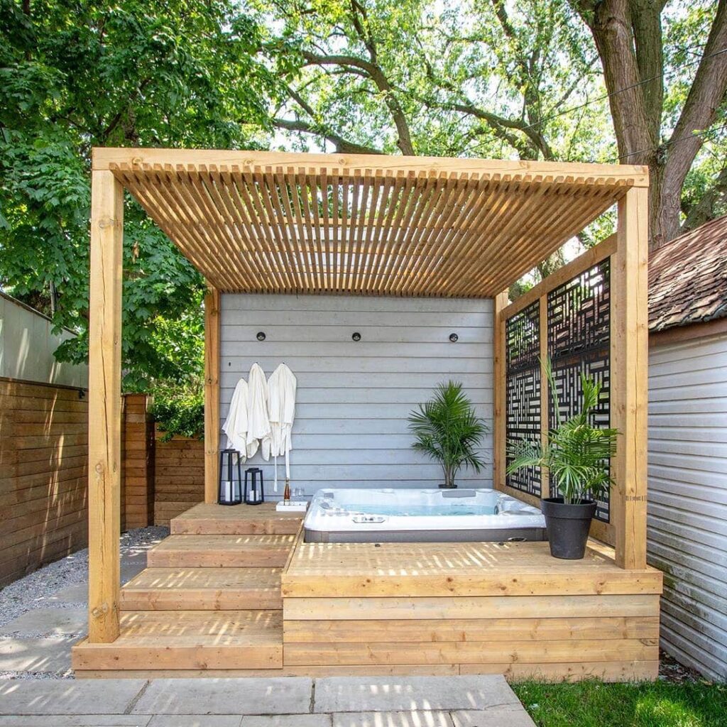 2. Pergola-Covered Outdoor Jacuzzi