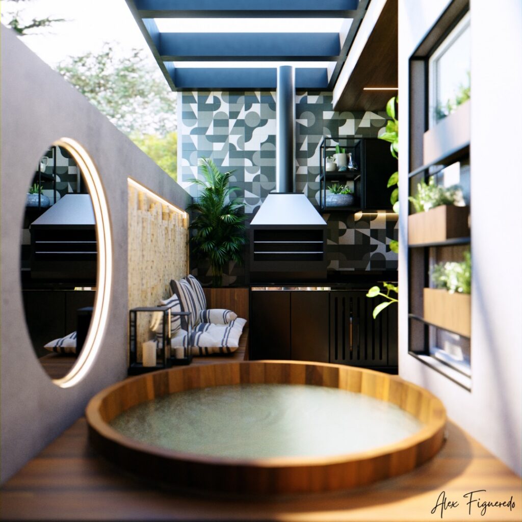 A minimalist outdoor jacuzzi focuses on clean lines, neutral colors, and simple layouts. With fewer decorative elements, the space feels calm and uncluttered. This style is ideal for contemporary homes and small outdoor areas.