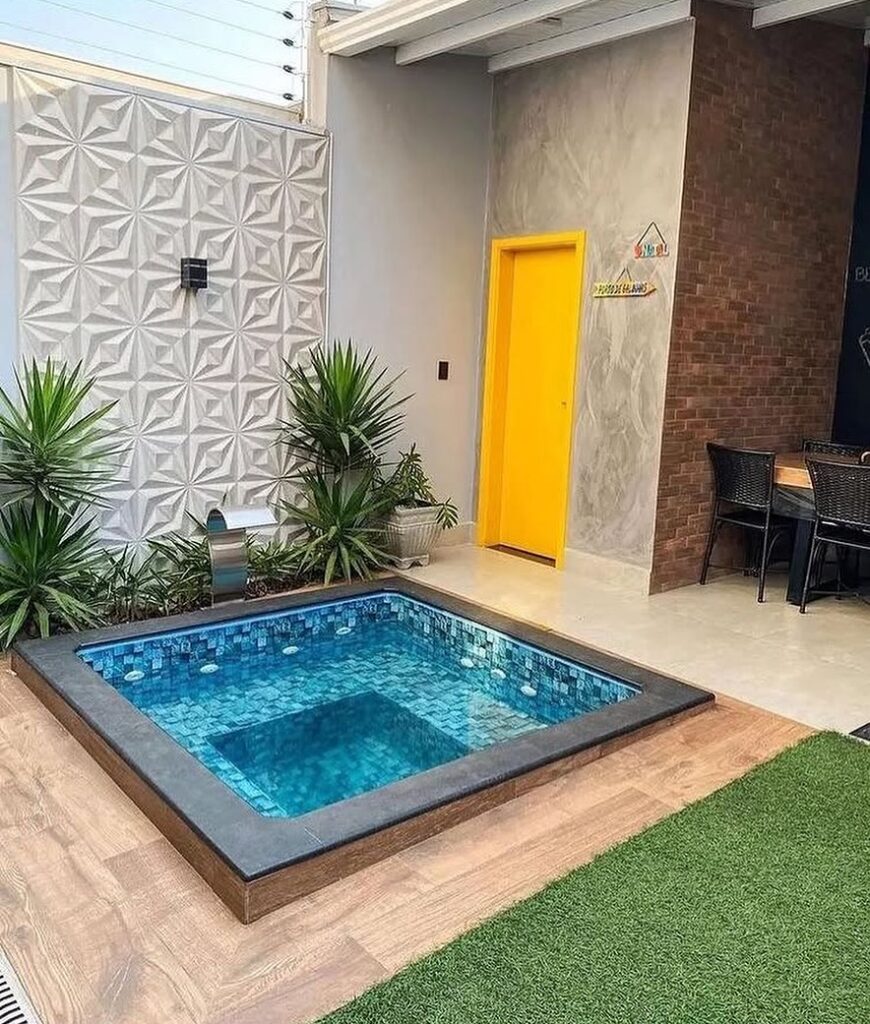 A sunken jacuzzi sits flush with the ground, giving a sleek and modern appearance. This design makes stepping in and out easier and keeps the area visually clean. It pairs beautifully with stone or concrete surroundings for a resort-style finish.