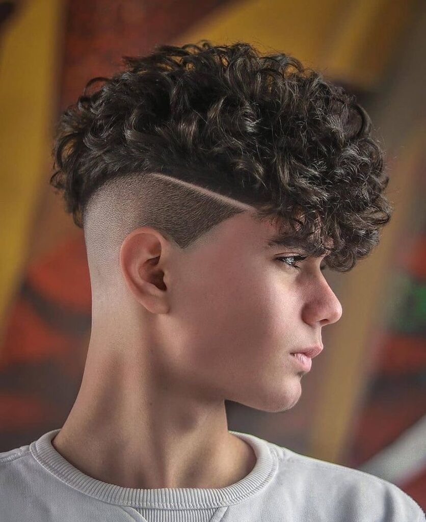 A curly undercut creates a bold contrast between voluminous curls on top and shaved or closely trimmed sides. This hairstyle offers a modern and edgy appeal. It allows the curls to stand out while keeping the overall look structured. Perfect for those who enjoy statement hairstyles.