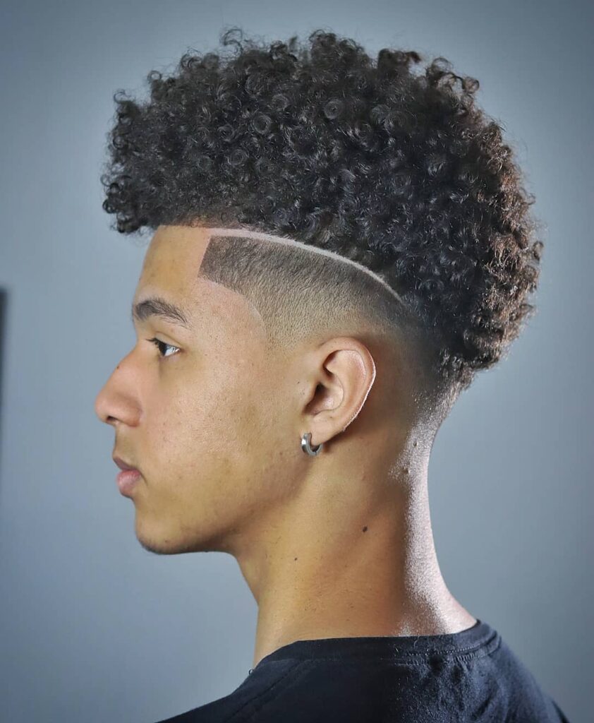 The natural curly afro fade celebrates volume and texture. The fade on the sides adds shape while keeping the afro well-defined. This hairstyle highlights natural curls beautifully. It’s a confident and stylish choice for men embracing their natural hair.