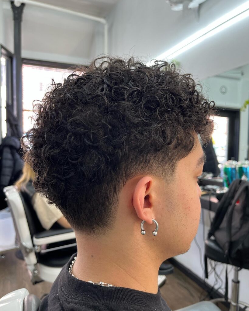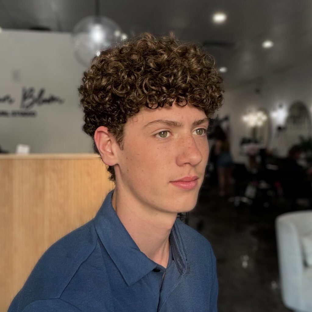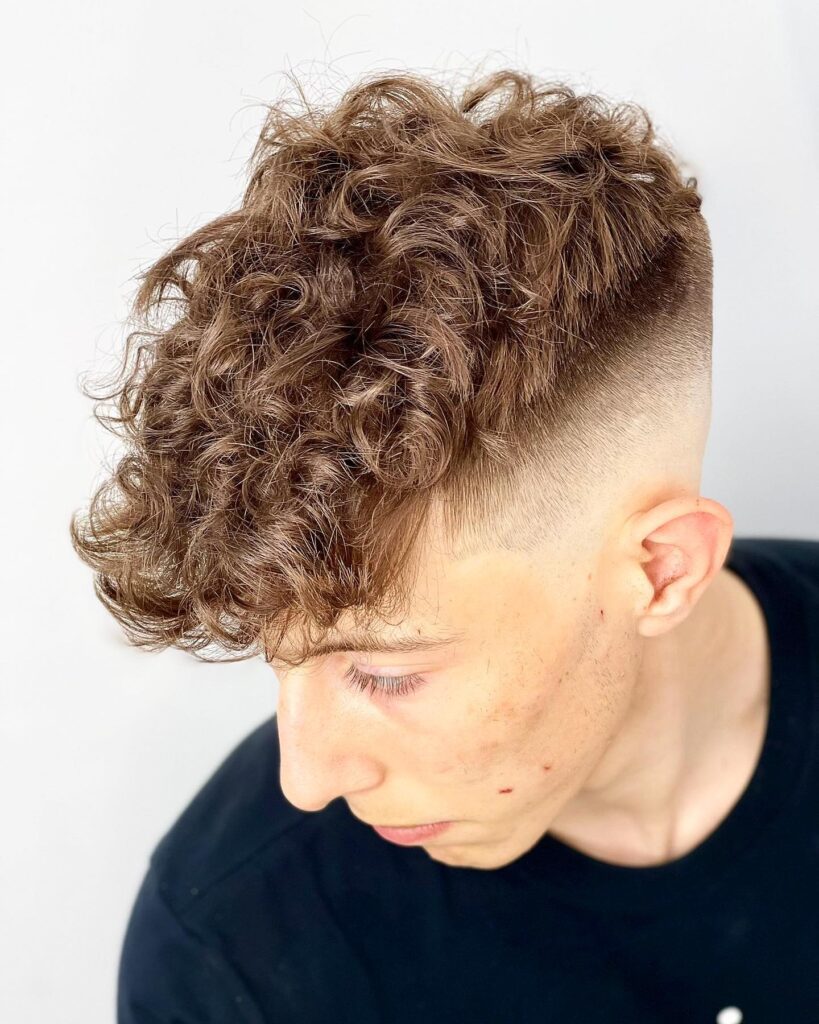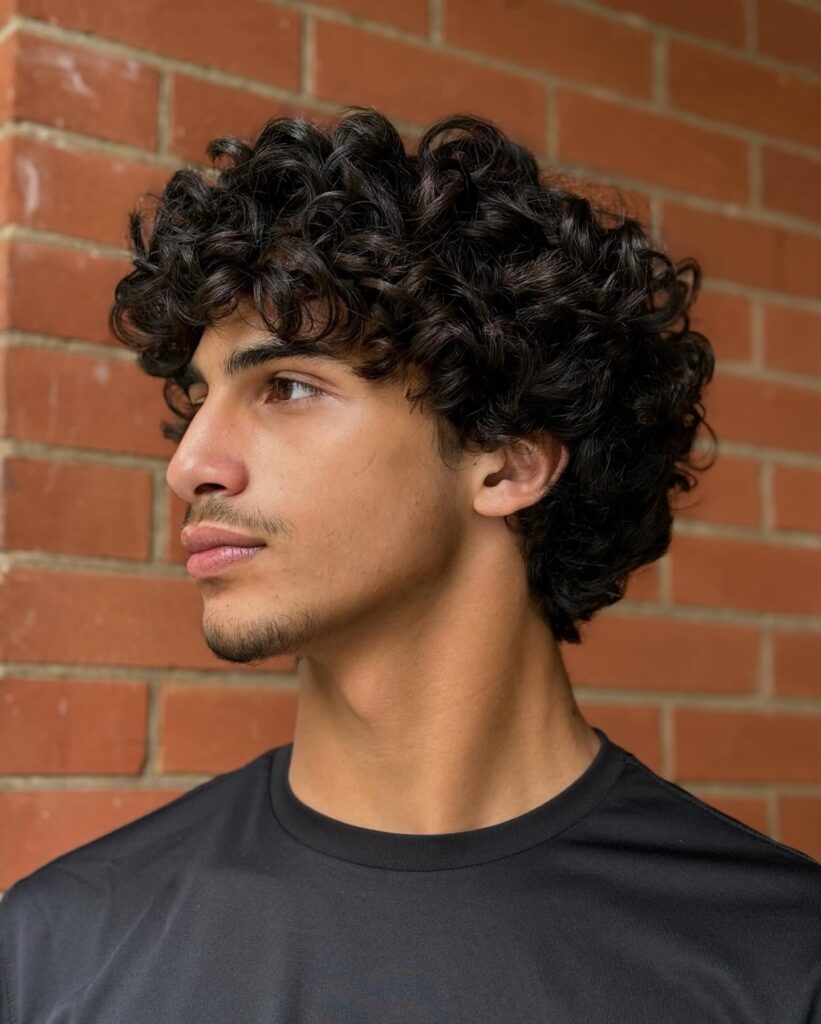 This hairstyle combines a relaxed curly top with neatly tapered sides. The messy texture adds a casual and youthful vibe. It’s easy to style and looks effortlessly cool. Ideal for men who prefer a natural, undone finish.