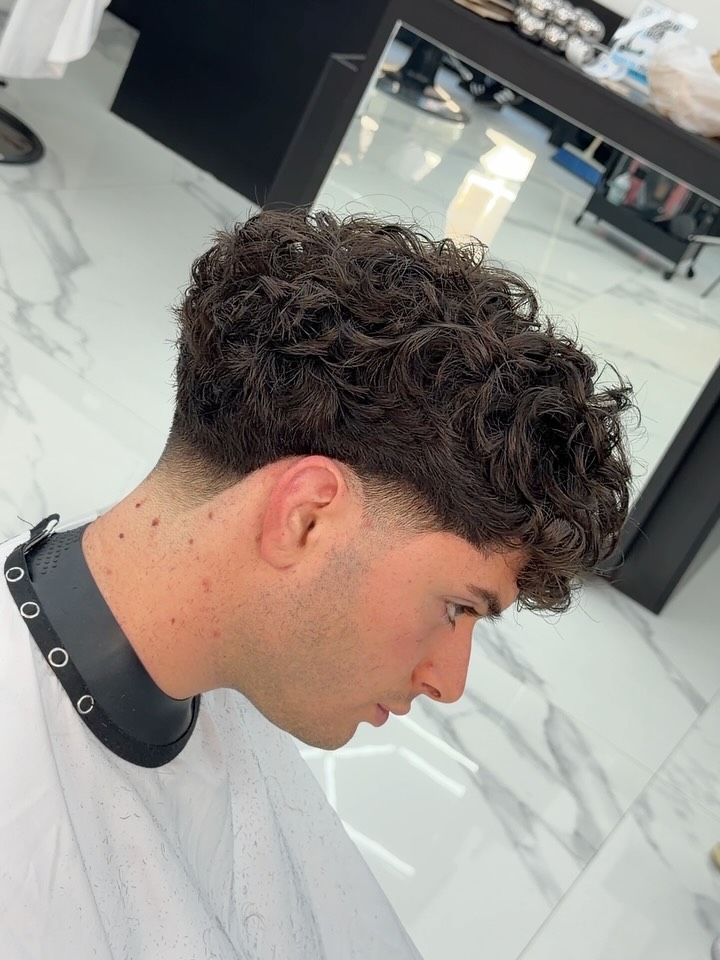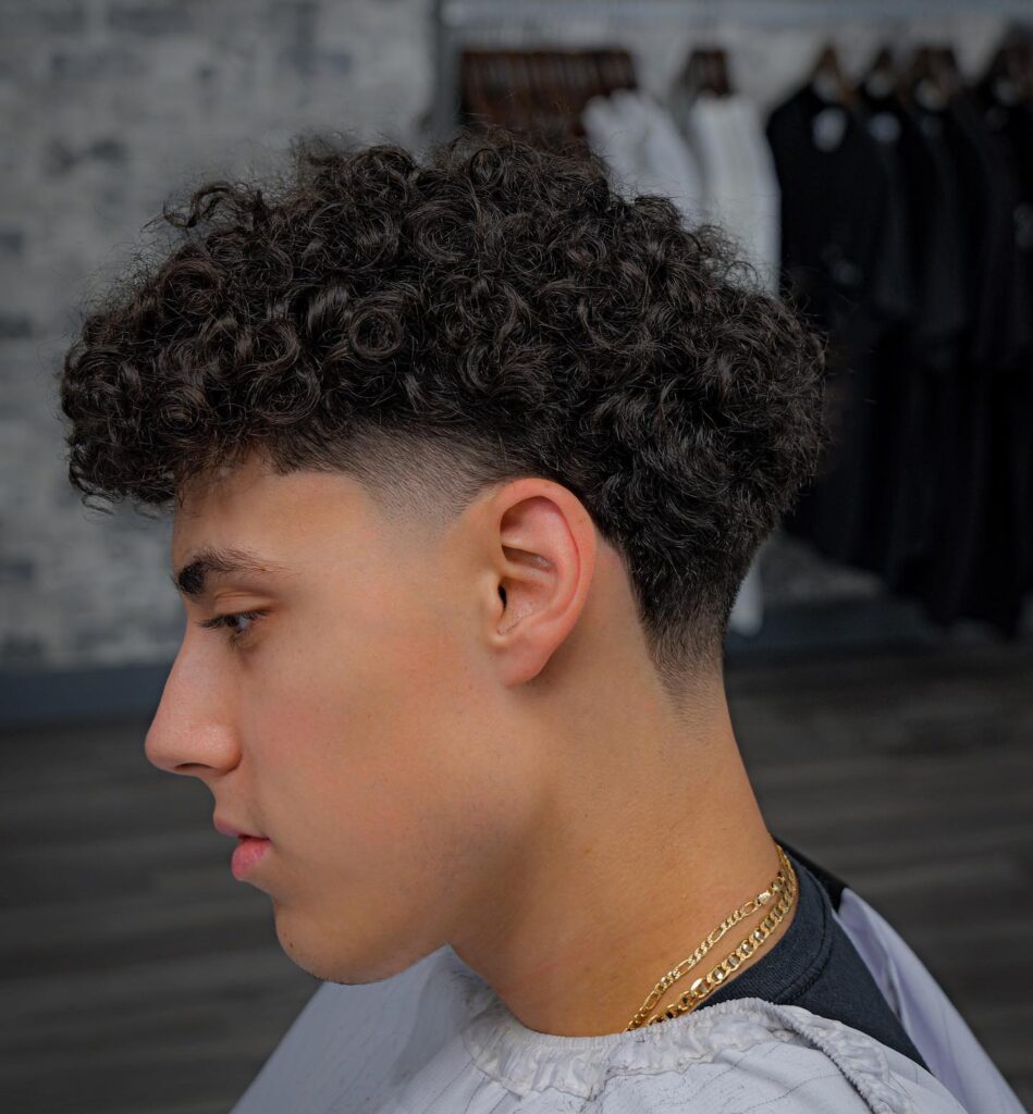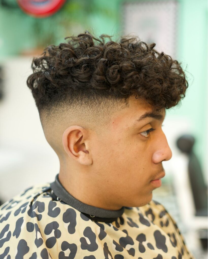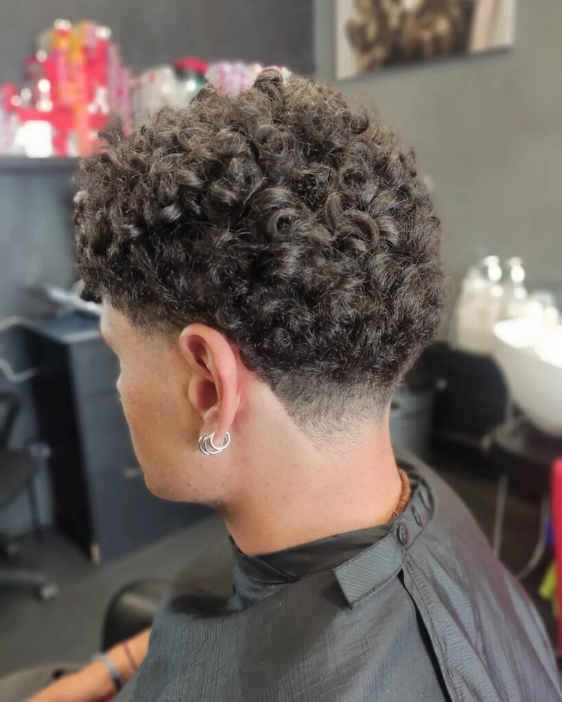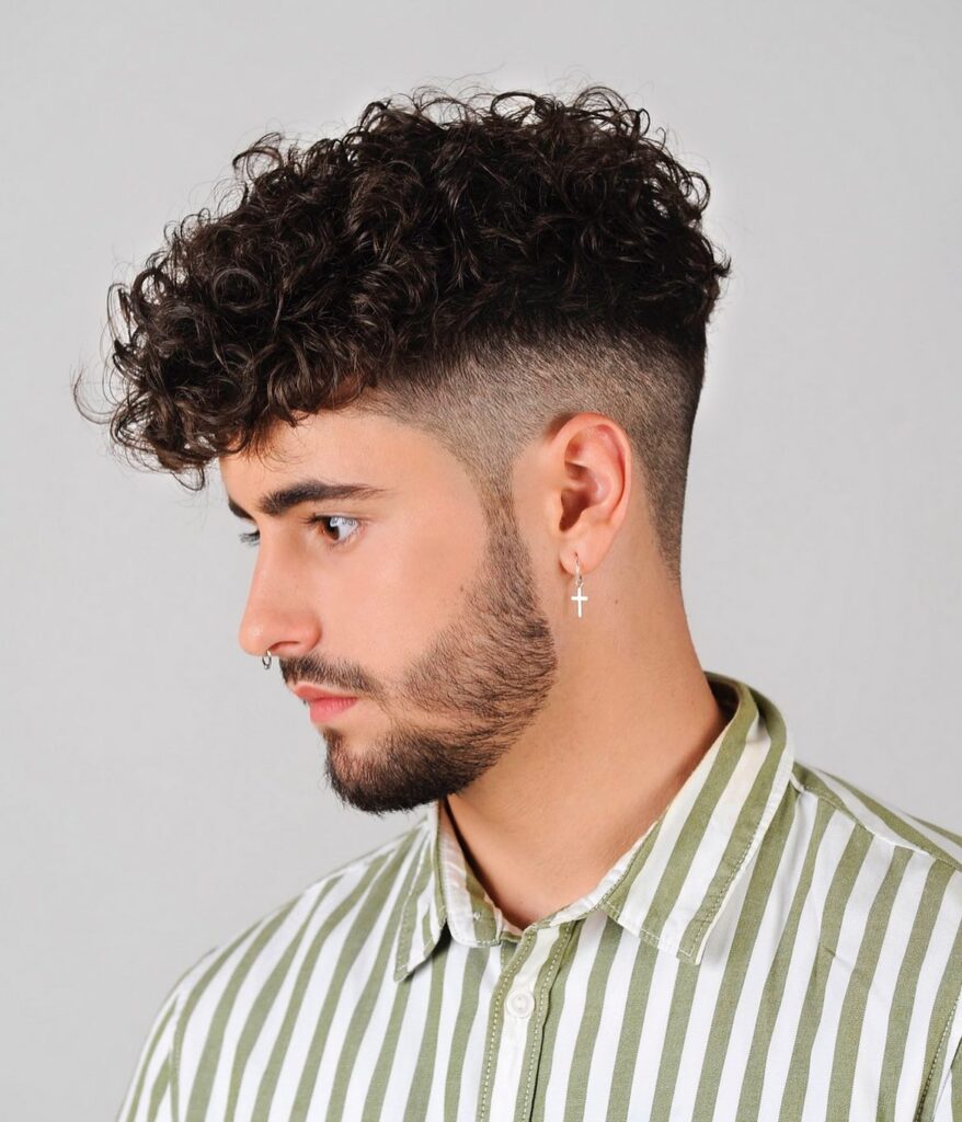 The curly high fade features tightly faded sides with fuller curls on top. This sharp contrast gives a clean and fashionable finish. It’s ideal for men who want a bold and contemporary look. The high fade also keeps the hairstyle fresh for longer periods.