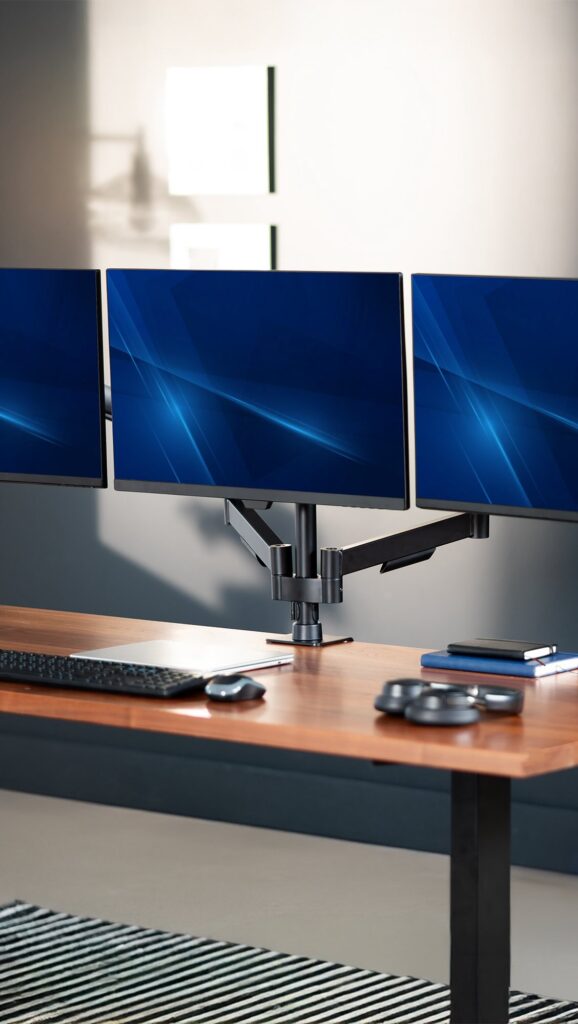 By mid-afternoon, sitting for hours starts to become a physical problem — back tight, energy low, focus scattered. A standing desk helps not because you stand all day, but because you can switch. Sit for a while, stand for a while, sit again. That simple back-and-forth keeps your body from locking up and your energy from completely dropping off. Add an anti-fatigue mat so standing stays comfortable, position the monitor at eye level, and the second half of the workday stops feeling like something you’re just trying to survive.
