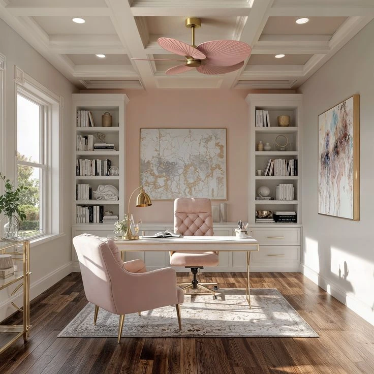 14. Feminine Home Office with Blush Tones