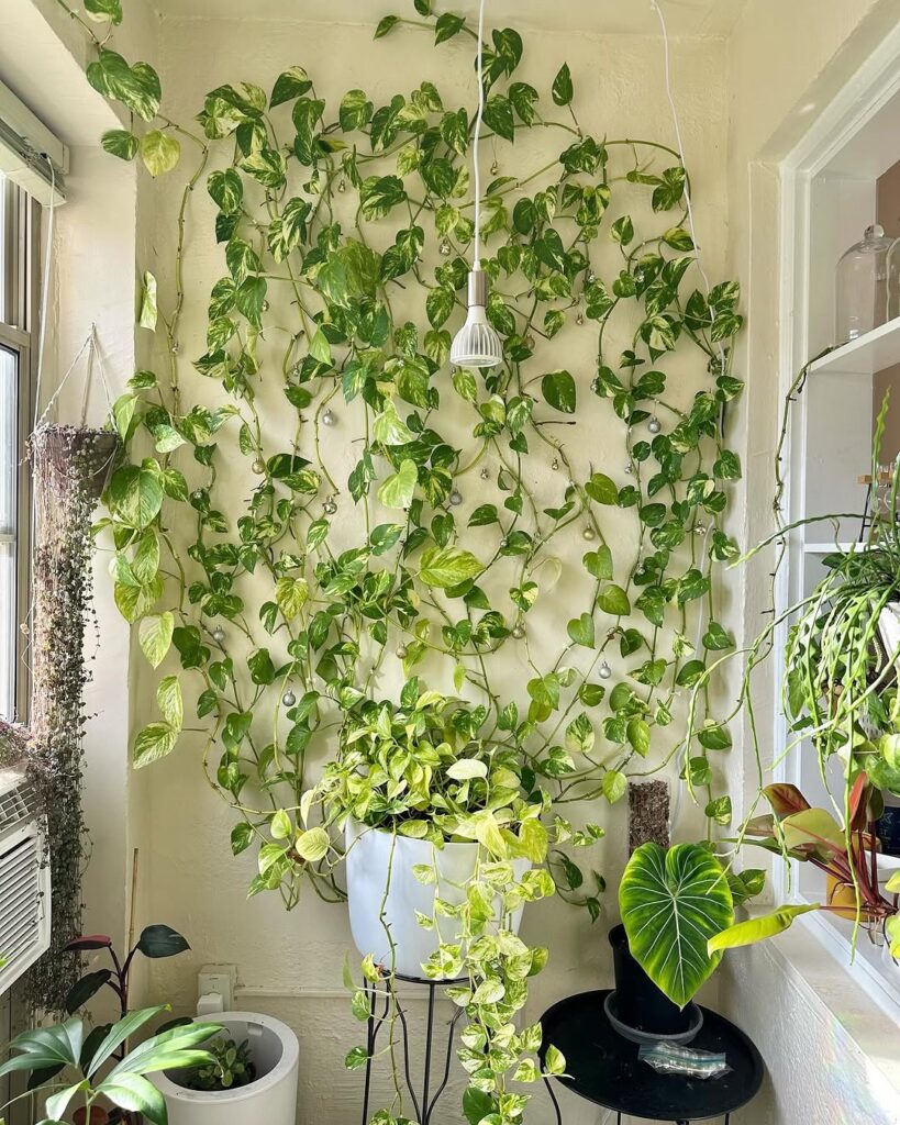A vertical plant wall — whether a full built-in system with irrigation or a simpler arrangement of wall-mounted planters holding trailing and upright plants — does something to a living room that no other wall treatment achieves: it makes the wall feel alive. The movement of leaves in a slight draft, the variation of green tones across different plant species, and the genuine organic texture of living plants against a painted wall creates a quality of naturalness and calm that manufactured materials cannot replicate. Even a partial vertical garden — a section of wall with a grid of simple wall-mounted planters — introduces enough living material to change the atmosphere of the room. Trailing plants like pothos or string of pearls work well in wall planters because they fill vertical space naturally. The maintenance requirement is the honest consideration — plants need water, light, and attention — but in a living room where a wall of greenery provides daily visual benefit, the maintenance tends to feel proportional to the result.