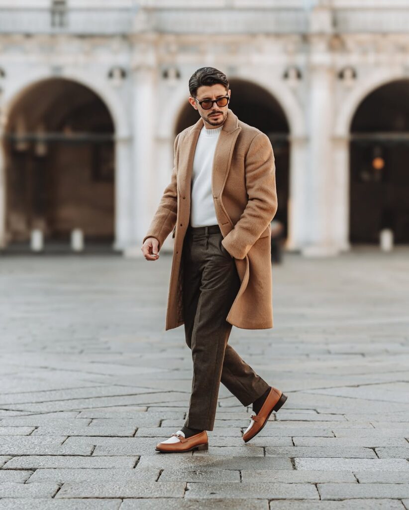 Camel is the monochrome color that is most directly associated with quality and luxury in men’s fashion because the fabrics that carry camel best — fine wool, cashmere, quality cotton — are themselves associated with investment dressing. An all-camel outfit — camel rollneck or fine-knit sweater, camel trousers, tan leather shoes — creates a look that reads as quietly expensive in a way that few other color combinations achieve without significant wardrobe investment. The warmth of the camel palette suits autumn and winter contexts particularly well, where the depth of the color works with the season’s light rather than against it. Within the camel family, the tonal range from a pale honey through a deep tobacco allows the same layering variation that makes other monochrome palettes interesting. Camel is the monochrome choice that consistently impresses people who notice what they are looking at, which is the most accurate measure of any outfit’s success.