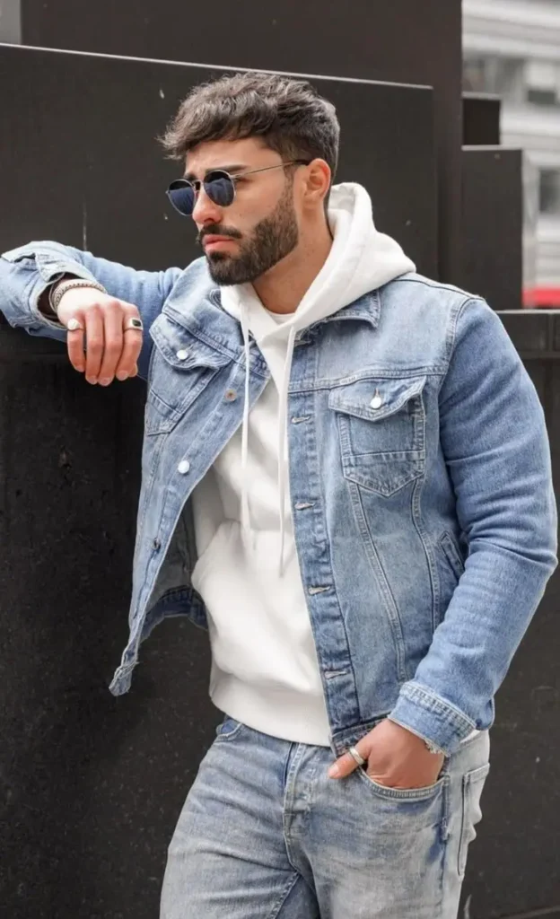 A denim jacket is one of the few pieces of outerwear that works as a genuine style statement rather than just something you wear because it’s cold. Over a plain white t-shirt and dark jeans — yes, double denim works if the shades are different enough — or over a simple grey sweatshirt, the denim jacket adds a casual sharpness that’s hard to replicate with other layers. It also has the advantage of being a piece that doesn’t go out of style. A good denim jacket bought ten years ago still looks current today, which is a rare quality.
