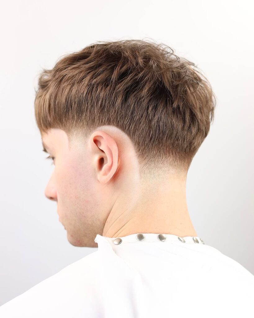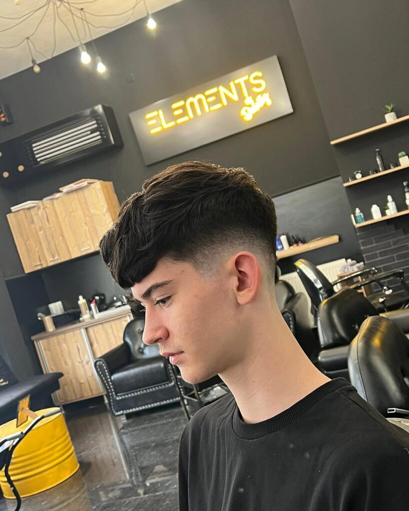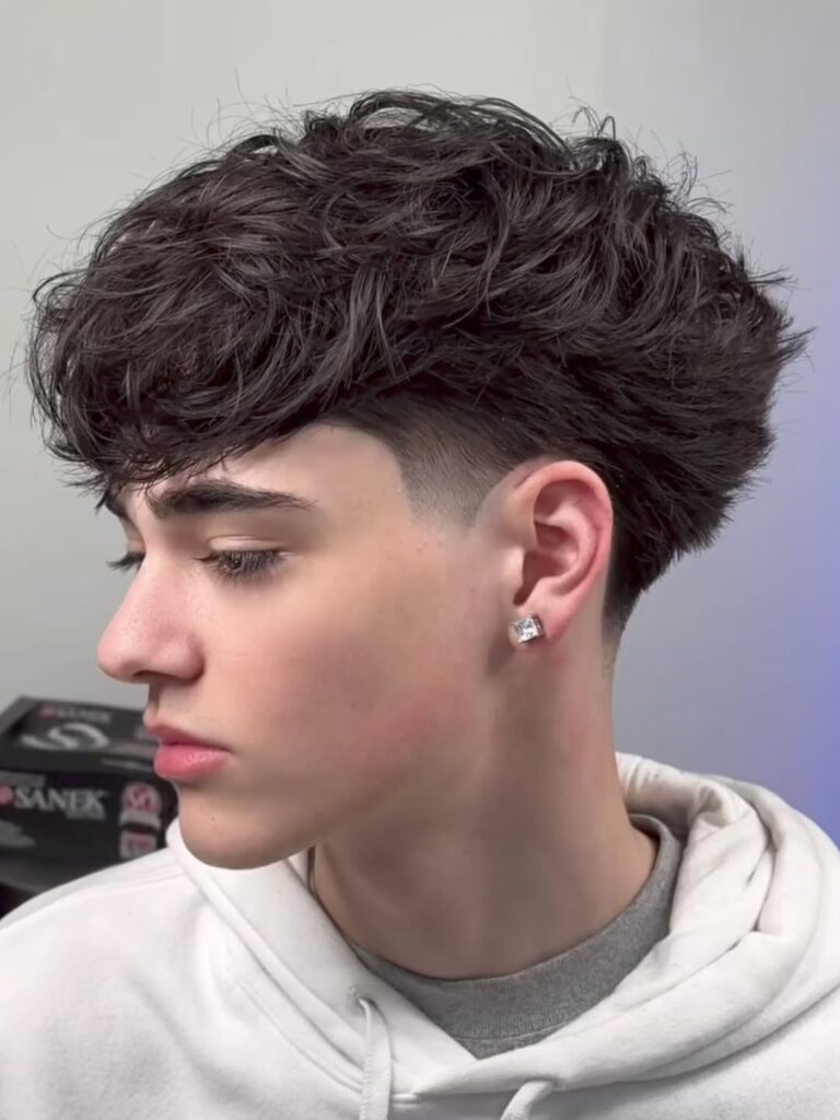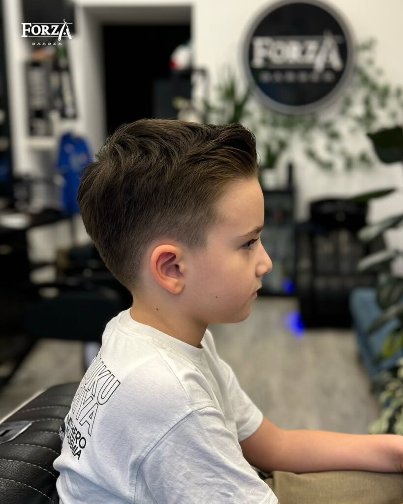 A messy textured top with a fade is perfect for boys who prefer a relaxed and natural style, as the textured hair on top adds movement while the fade keeps the sides clean, allowing the haircut to look good without requiring much effort or daily styling.