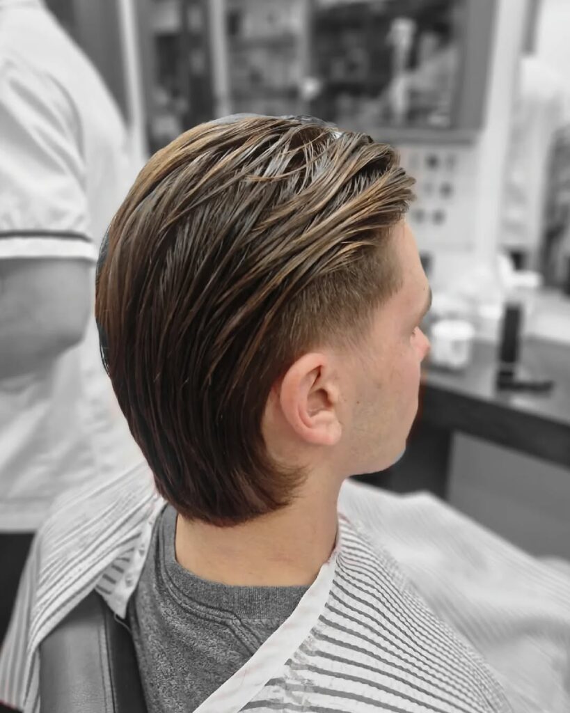 The comb over with a low fade provides a clean and structured appearance with gently faded sides and neatly combed hair on top, making it suitable for both everyday wear and special occasions while maintaining a smart and polished look.