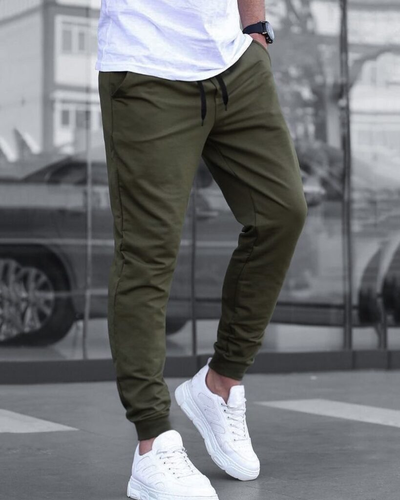 A fitted tank top with lightweight joggers provides a comfortable summer outfit for days when staying cool is the priority. Joggers made from breathable cotton or technical fabric keep the look clean while allowing easy movement. This combination works well for travel days, casual outings, or light workouts, especially when paired with simple white sneakers.