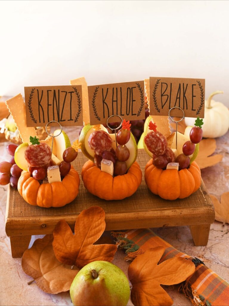 Mini pumpkin place settings are a fun and affordable way to personalize your table. Place a small pumpkin at each seat with a name tag or handwritten note. This idea doubles as both décor and a thoughtful keepsake for guests to take home.